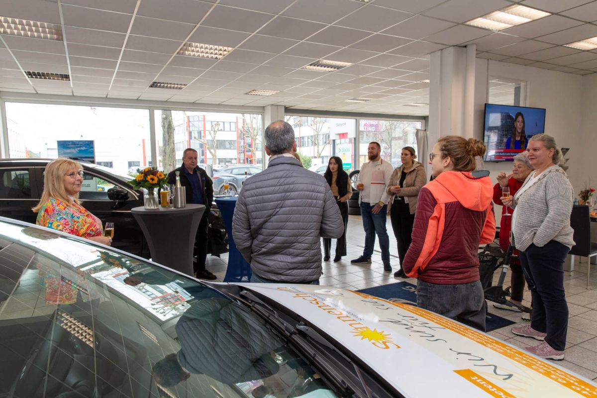Feierliche Fahrzeugübergabe bei Sekt und Häppchen - Sonnenschein Seniorenbetreuung dankt den Werbepartnern